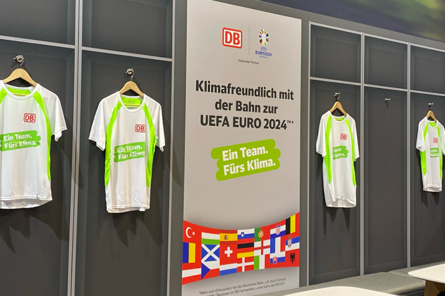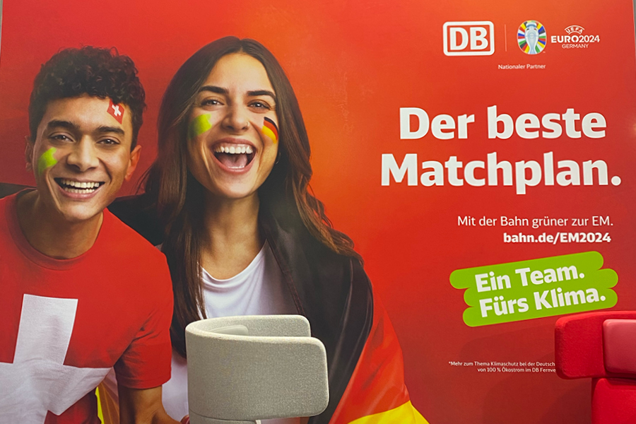 Ein diesjähriges Highlight: Die Deutsche Bahn ist offizielle Nationale Partnerin der UEFA Europameisterschaft 2024™ und bringt die Fans klimafreundlich zu den zehn Austragungsorten in Deutschland, was sich im Erscheinungsbild und der Kommunikation wiederspiegelte.