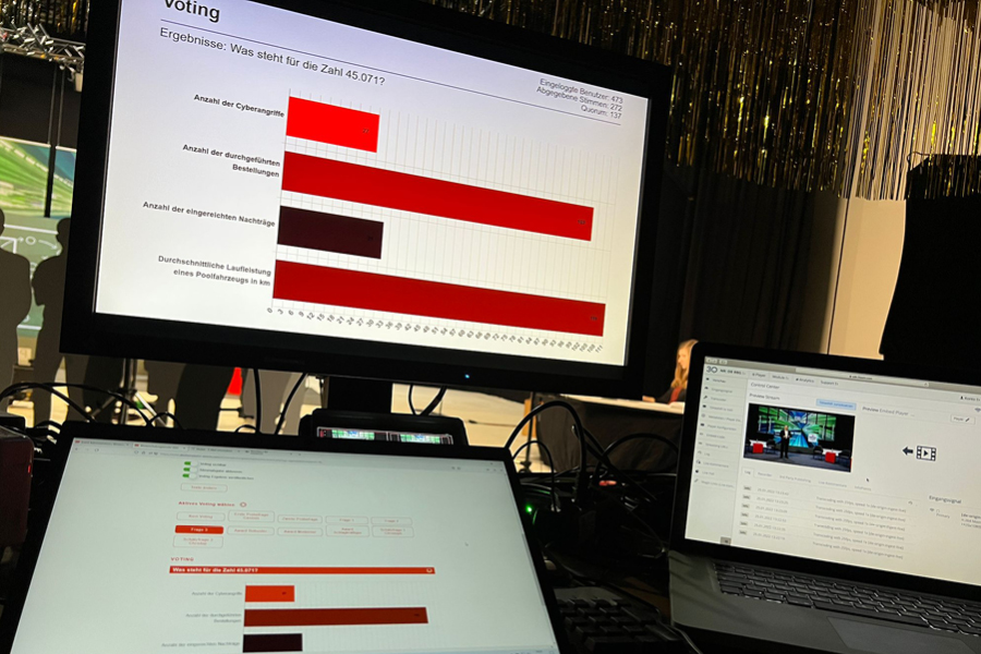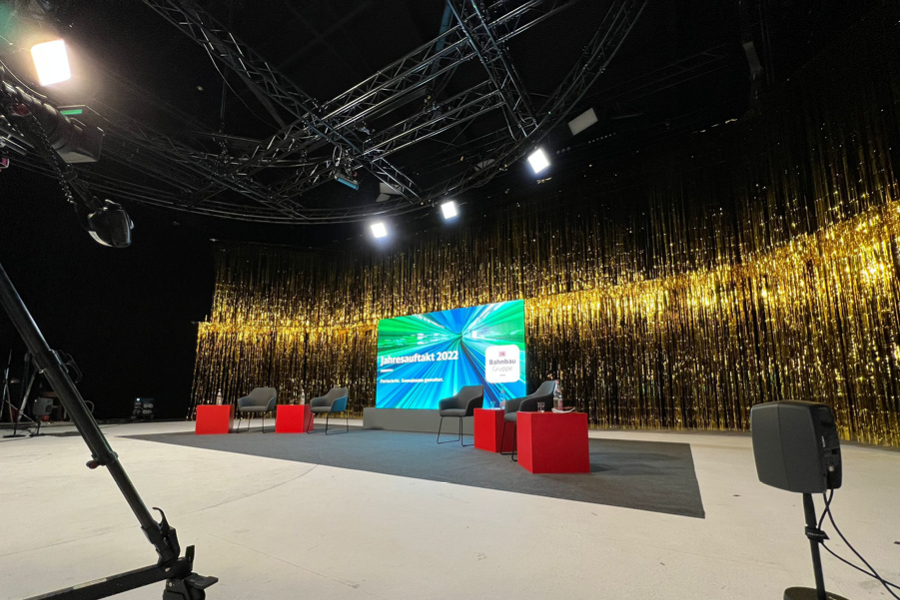 Im Januar 2022 hat der virtuelle Jahresauftakt 2022 der DB Bahnbau Gruppe stattgefunden. Hierbei durften wir in Berlin mit unserer Streaming Plattform sowie den interaktiven Modulen in den Hangar Studios Berlin unterstützen. Es gab spannende Vorträge, ein vielfältiges Programm sowie ein virtuelles Abendevent.