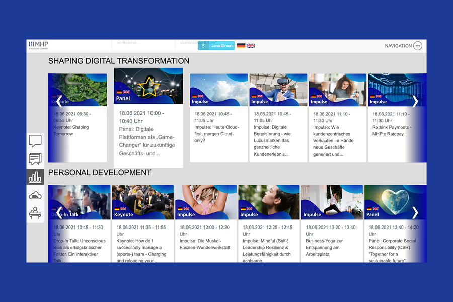 Zum 25. Jubiläum hat am 18. Juni 2021 das MHP Festival virtuell unter dem Motto »shaping tomorrow« stattgefunden. Dabei wurden die aktuell interessantesten Technologien, Impulse, Best Practices und Use Cases digital vorgestellt. Mit unserem Parnter Pulsmacher gab es auf unser Plattform drei Content-Streams, 50 Top-Speaker sowie rund 600 Minuten vielfältigen Content zu entdecken. Mehr dazu folgt morgen und übermorgen