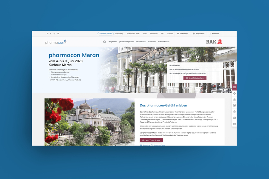 Vom 04. bis zum 09. Juni hat im Kurhaus Meran der große wissenschaftliche Fortbildungskongress »pharmacon« stattgefunden. Neben dem Programm vor Ort, war es zudem möglich mit dem Format »pharmacon@home« das Online-Fortbildungsangebot digital wahrzunehmen. Und mit der pharmacon On Demand bleiben die Inhalte auch nach dem Event noch verfügbar.